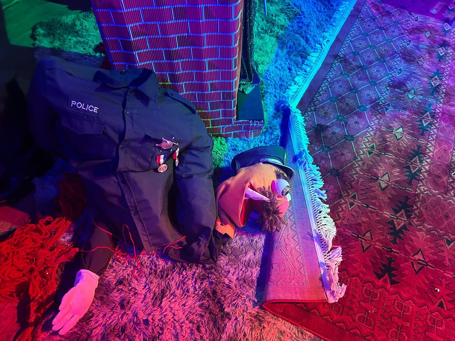 Throughout the Cool Zone, the audience follows the various ways in which Courtney is manipulated and indoctrinated by the state. Part of this is achieved through dialogue, but the production also utilizes police academy training videos, as well as curated commercial breaks taken from the 1980s or 1990s that were used to market military and police toys to young boys.